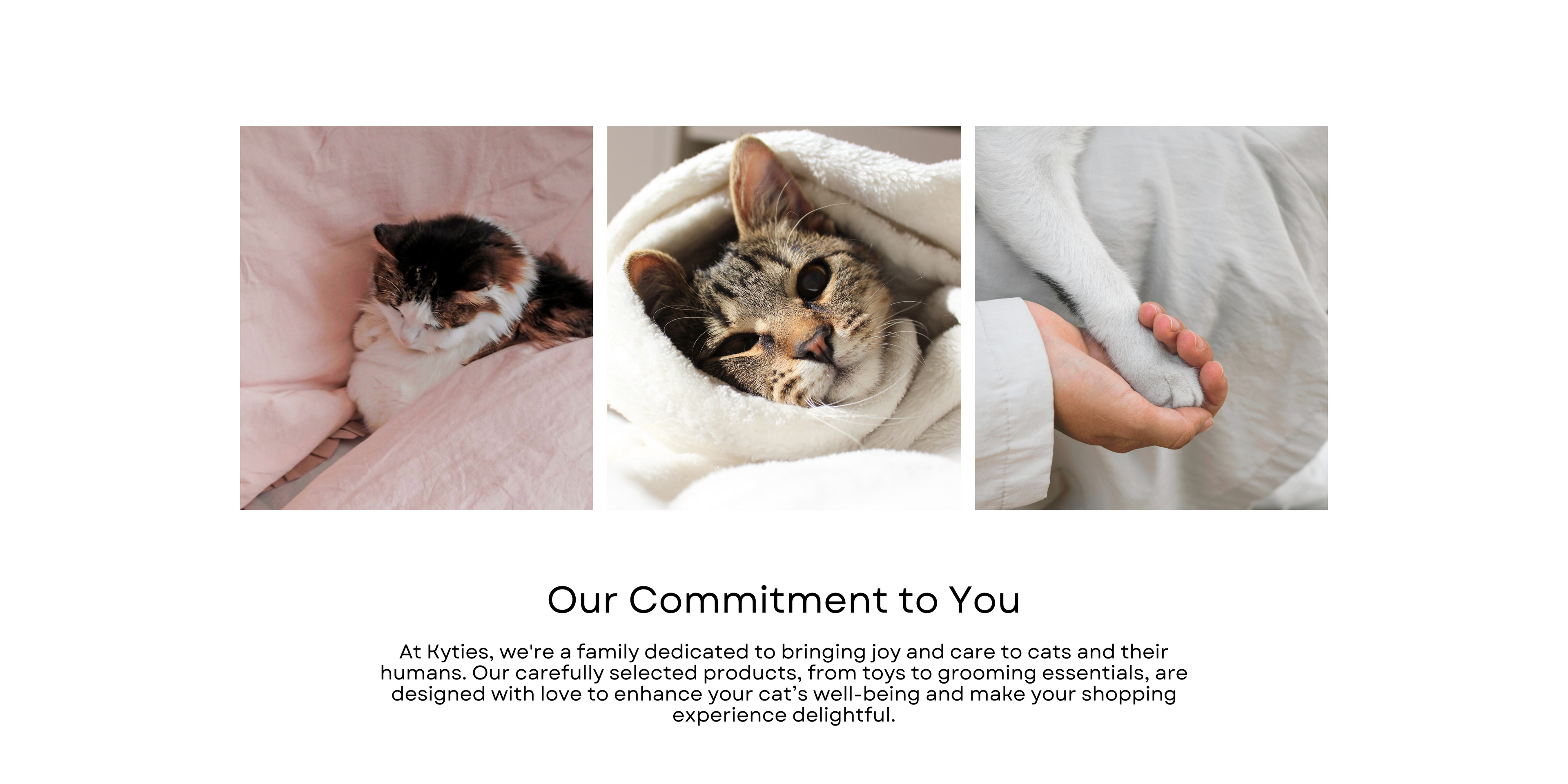 At Kyties, we’re more than just a cat shop—we’re a family committed to supporting cats and their humans. We carefully curate each product to ensure it brings happiness, health, and enrichment to your feline companion. From innovative toys to grooming essentials, our selection is designed with love to elevate your cat’s experience. We’re dedicated to providing only the best for your cat and offering the most delightful shopping experience for you.